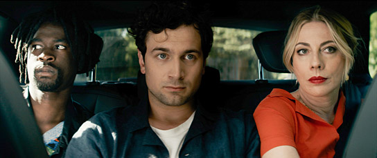 Beskrivelse: Léo Daudin, Samuel Schneider, Smaragda Karydi (left to right) in "More than Strangers" (2023)