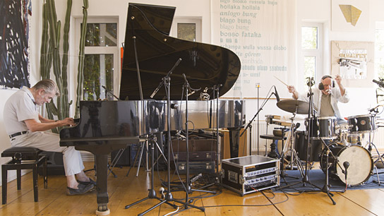 Beskrivelse: Alexander von Schlippenbach (left) in "Tastenarbeiter - Alexander von Schlippenbach" (2023)