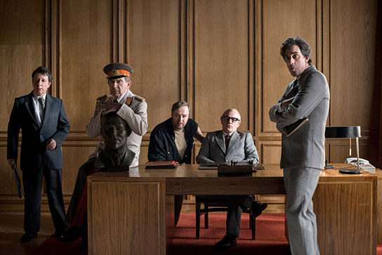 Beskrivelse: Steffen Scheumann (on the left), Stephan Grossmann (third on the right), Jörg Schüttauf (second on the right), Alexander Schubert (on the right) in "Vorwärts immer!" (2015-17)