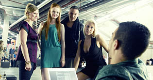 Beskrivelse: Szene mit Nicole Pötschke, Theresa Schwiersk, Kay One, Julia Temtsin, Bushido (vorne, v.l.n.r.)