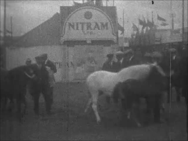 Amateur footage of stone-clearing on a beach and shots of an agricultural show.