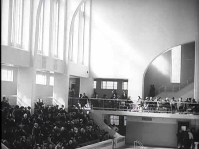 The opening ceremony of the new Bon-Accord swimming baths in Aberdeen, with shots of the pool, spectators and swimmers.