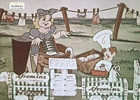 Commercial for Afrominz - extra strong peppermint candies from Saxony. Cartoon. A train of Afrominz travels through the country, the Berlin bear eats away, a laundress in Vienna, hikers on the mountai...