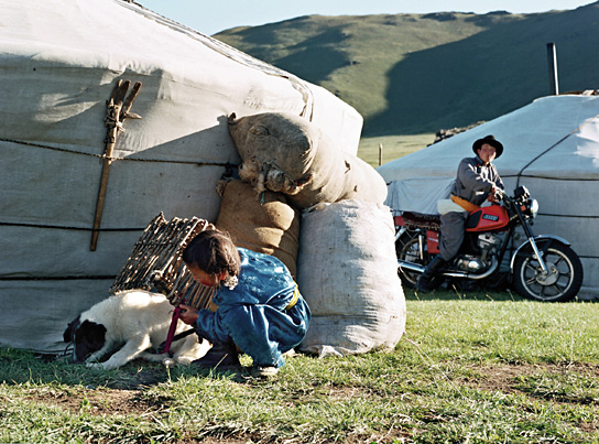 Nansal Batchuluun, Urjindorj Batchuluun (from left to right) in "Die Höhle des gelben Hundes" (2004/05)