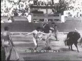 1 - il toro colpisce con le corna il torero che viene sollevato da terra