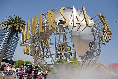 Beschrijving: Company logo of Universal Studios at the entrance of their theme park