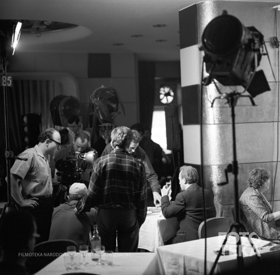Trefwoorden: restauracja / kamera / kieliszek / reflektor / ekipa filmowa / oświetlenie / Director: Skórzewski Edward / Director: Hoffman Jerzy / Hoffman Jerzy