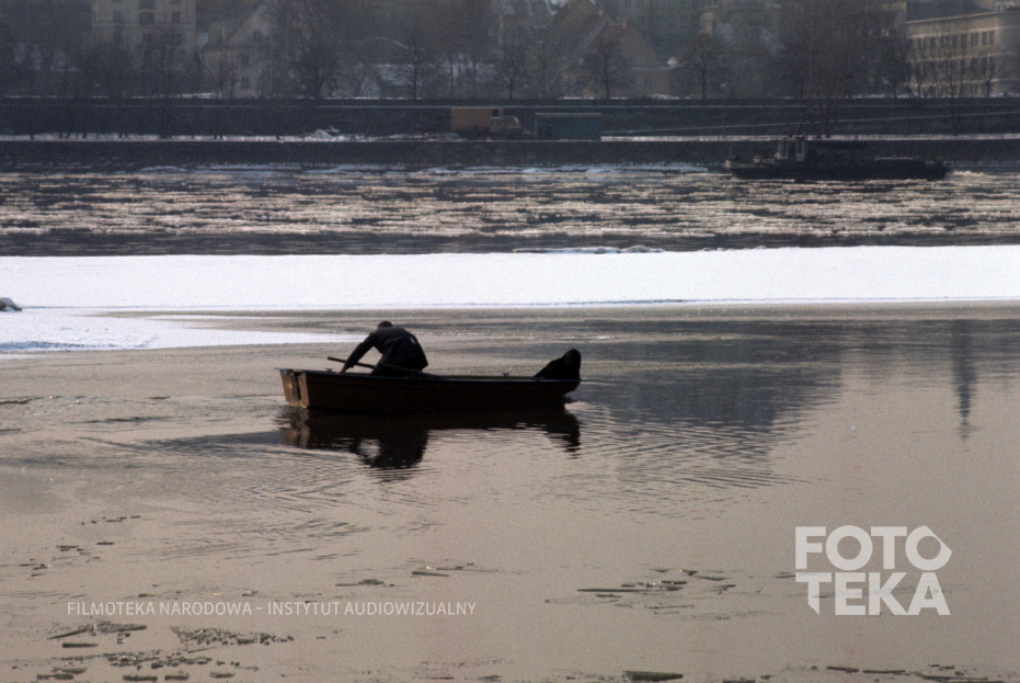 Trefwoorden: zima / łódka / rzeka / śnieg / Director: Skolimowski Jerzy / Fronczewski Piotr