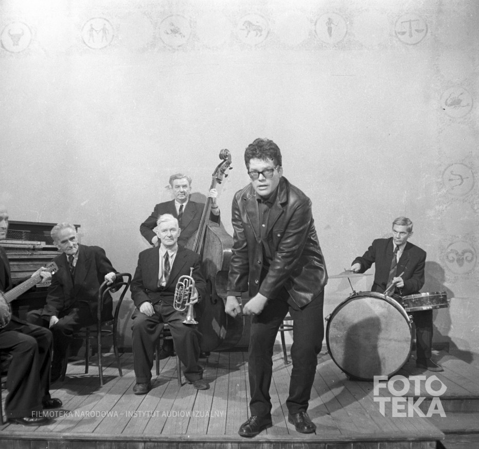 Trefwoorden: instrument muzyczny / pianino / scena / perkusja / orkiestra / trąbka / kontrabas / Director: Konwicki Tadeusz / Cybulski Zbigniew