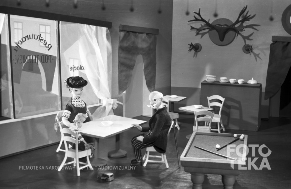 Trefwoorden: restauracja / zastawa stołowa / zabawka / auto zob. samochód / bilard / poroże / Director: Hartwig Janina