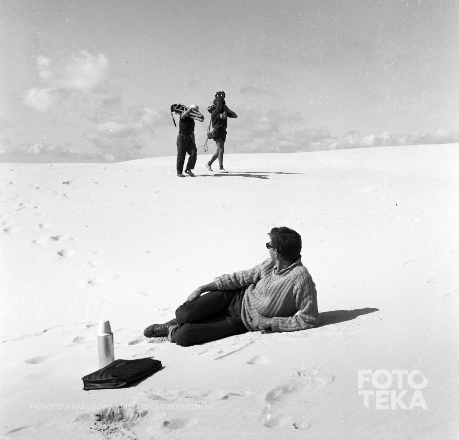 Trefwoorden: piasek / pustynia / odpoczynek / statyw / termos / Director: Ślesicki Władysław / Ślesicki Władysław