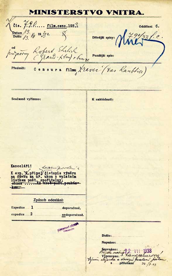 Descrição: Film distributing company applies for new censoring of the film "Dravec". The film was completely interdicted again.