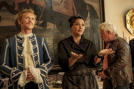 Pit Bukowski, Jasmin Shakeri, Jörg Schüttauf (left to right) in "Ein Fest fürs Leben" (2023)