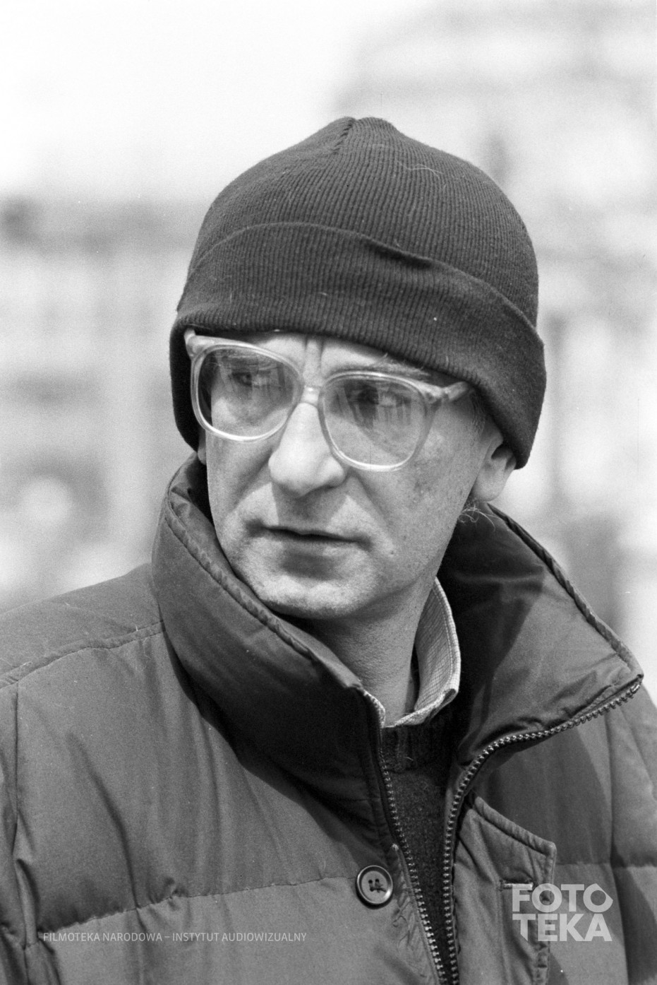 On the set of “A Short Film About Killing” (1987), dir. Krzysztof Kieślowski. The director at work on set. Photo: Romuald Pieńkowski, black and white negative, 35 mm format