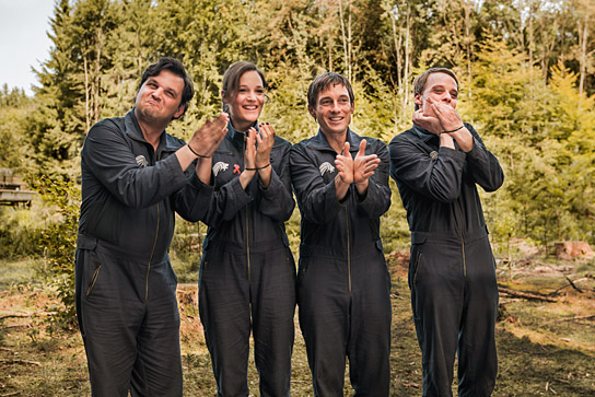 Sascha Alexander Geršak, Vicky Krieps, Volker Bruch, Stefan Konarske (from left to right) in "Outside the Box" (2014/15)