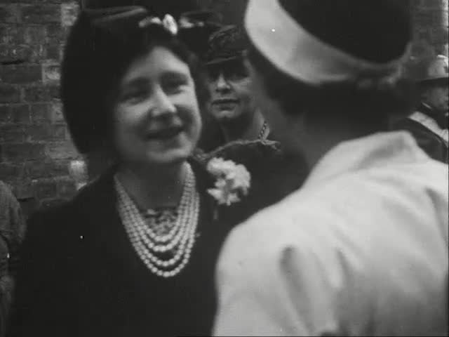 King George VI and Queen Elizabeth tour Templeton's carpet factory in Glasgow where women are making army blankets.