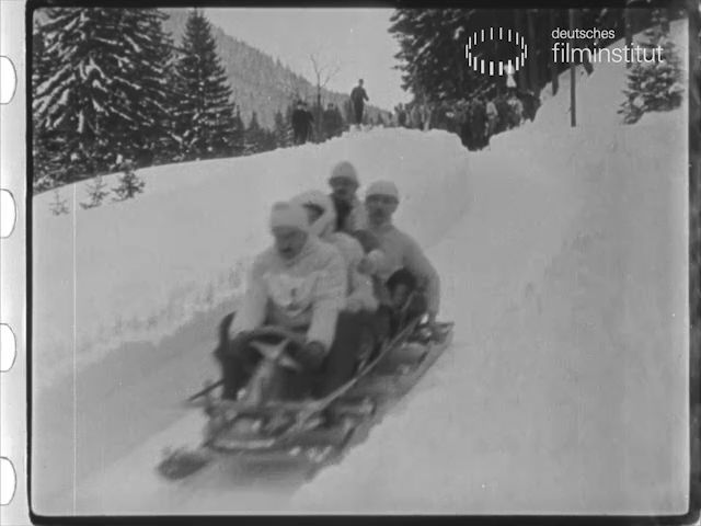 Footage from the first German series of news films, the "Day in Film" format produced by Express-Film (Freiburg), showing a bobsledding race with spectators in an Austrian mountain landscape. Short "a...