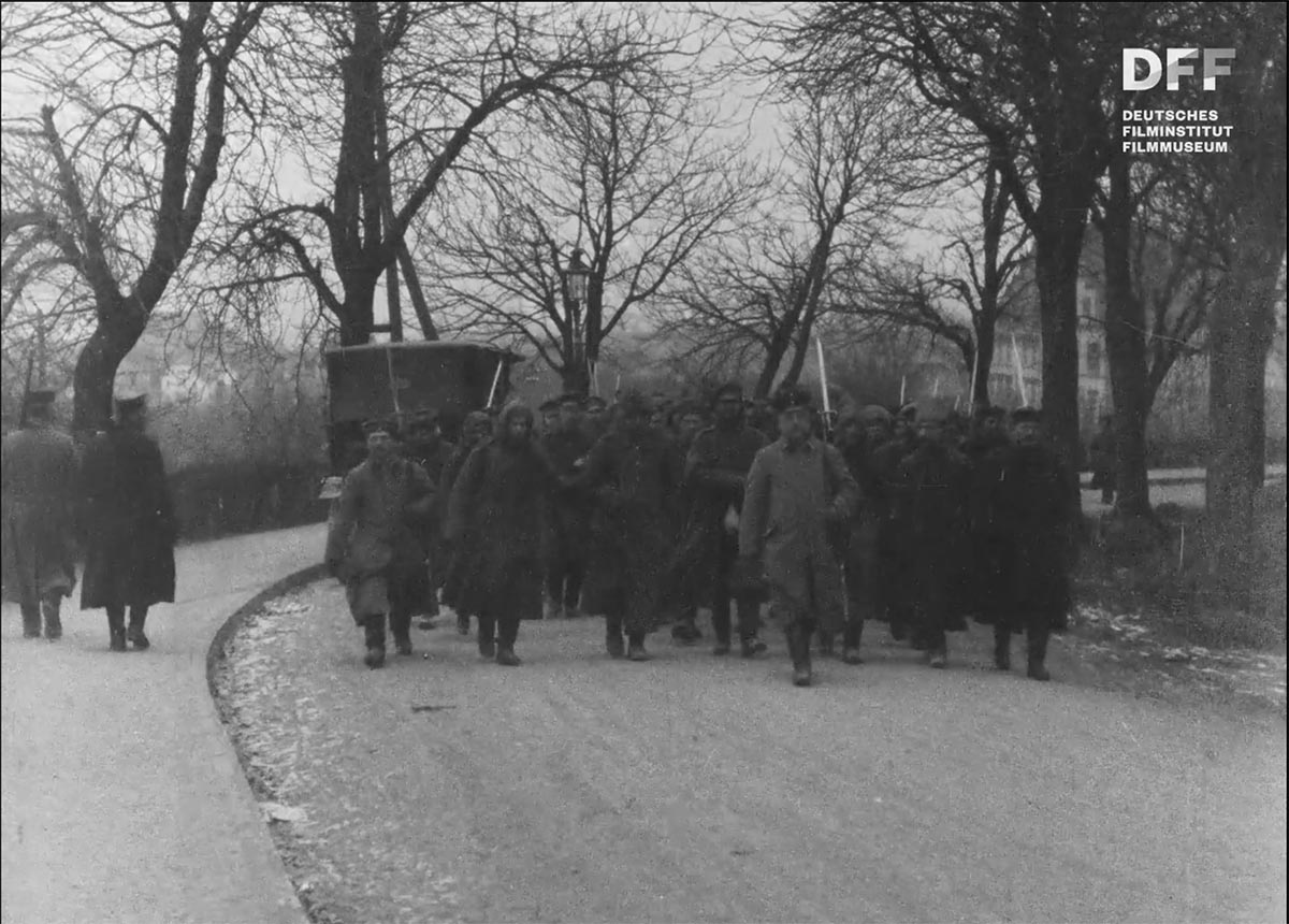 (vasakul) haavatud ohvitseridega Tsarskoje Selo sõjaväehaigla territooriumil.