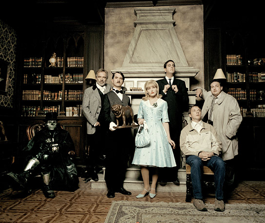 Thomas Fritsch, Christoph Maria Herbst, Tanja Wenzel, Bastian Pastewka, Olli Dittrich, Oliver Kalkofe (second to seventh from left) while shooting "Der Wixxer" (2004)